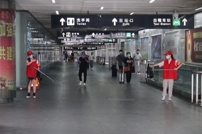 从落客平台到公交车站再到中央广场,志愿者们辛苦捡拾每一个烟头,耐心解答每一次问询,劝阻乱扔垃圾、随地吐痰等不文明行为,为创城工作做出了自己的贡献。